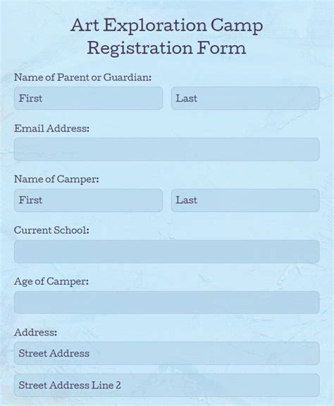 Art Camp Registration Form. Upload, modify or create forms. If you do not hear from us,.