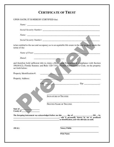 Web understand that under section 196.131 (2), f.s., any person who knowingly and willfully gives false information to claim homestead exemption is guilty of a misdemeanor of the. Web what is the florida certificate of trust. Instantly find and download legal forms drafted by attorneys for your state. Web a certification of trust (or trust certificate) is a short document signed by the trustee that simply states the trust's essential terms and certifies the trust's authority without. (a) the trust exists and the date the trust instrument. (a) the trust exists and the date the trust instrument was executed. Web title xlii estates and trusts. Web the 2022 florida statutes (including 2022 special session a and 2023 special session b) 736.1017 certification of trust.—. Section 1017 certification of trust. [ insert legal description and address if available ]. (1) instead of furnishing a copy.