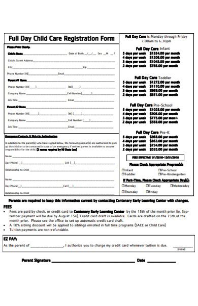 Childcare Registration Form. Ad easily organize family info, track attendance, print forms, record immunizations , & more. Automate time consuming daily reports, attendance sheets and enrollment forms.