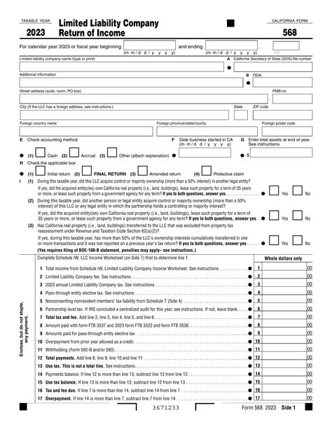 Fillable California Form 568 Limited Liability Company Return Of
