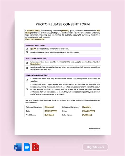 Picture Release Consent Form. The agreement provides rights to publishing on various media platforms. Web this daycare photo release form template is a simple, yet effective template for setting photo release agreements between parents and the daycare center.