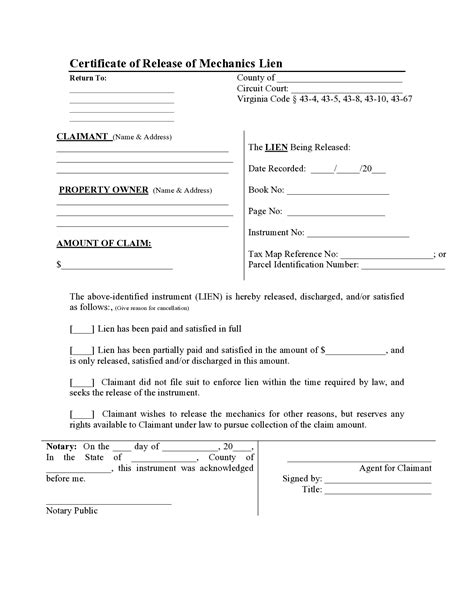 Release Of Lien Form Virginia. Authorization for partial or full. Web authorization for partial or full release of judgment lien.