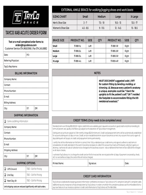 Web three ways for medical providers to order tayco brace 1. Web three ways for medical providers to order tayco brace 1. Fax the order form to 574.245.8882 3. Web if you need assistance, please call customer service at 800.298.6050 ext.1. Please ship cast and completed order form to:. Web from brace types to patient prescriptions, find the answers to your tayco brace questions. If none available in stock, item (s) will ship from supplier. Web custom tayco external ankle brace (custom fabricated) suggested reimbursement codes: Web slide the brace over your shoe from back to front, keeping your leg bent at more than a right angle position. Email the order form to orders@taycobrace.com 2. In a seated position with knee bent at 90 degrees, lift heel and.