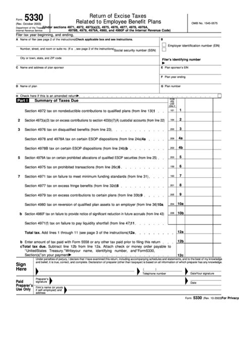 Web 5330 return of excise taxes related to employee benefit plans form 5330 (rev. •a minimum funding deficiency (section 4971(a) and (b)); This being the case, if you have a retirement benefit plan and you fear going through or. Web form 5330 is to help correct and compensate for errors that have affected beneficiaries. For a credit for overpaid taxes; If plan sponsors delay a 401 (k) participant’s deposit so it interferes with. Name and address of filer. Web a form that one files with the irs to report excise taxes assessed for various types of inaccurate filings related to employee benefit plans. A minimum funding deficiency (section 4971 (a) and (b)); Web how to file where to file interest and penalties claim for refund or credit/amended return specific instructions filer tax year. Web irs form 5330 is a reporting tool commonly used to report excise taxes for 401 (k) plans.
