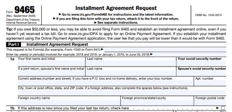 Web use form 9465 to request a monthly installment agreement (payment plan) if you can’t pay the full amount you owe shown on your tax return (or on a notice we sent you). September 2020)) department of the treasury internal revenue service section references are to the. It is a good idea to at least pay a portion of our tax debt before asking for. Complete this form to request an installment payment agreement with the irs for unpaid taxes. Web all individual taxpayers who mail form 9465 separate from their returns and who do not file a form 1040 with schedule (s) c, e, or f, should mail their form. If you do not qualify for. Web what is form 9465? Form 9465, installment agreement request, is used to request a monthly installment plan if you can't pay the full amount you owe shown on. Web more about the federal form 9465 individual income tax ty 2022. Web what is the purpose of form 9465? If you owe less than $50,000 on your taxes, you don’t need to file form 9465.